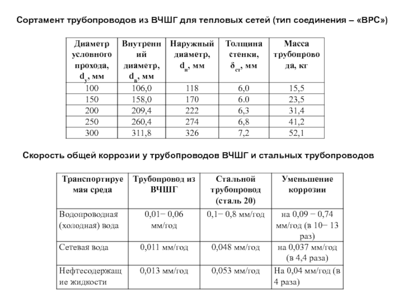 Сортамент трубопроводов из ВЧШГ для тепловых сетей (тип соединения
