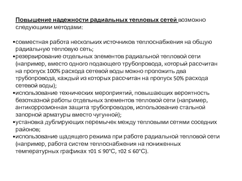 Повышение надежности радиальных тепловых сетей возможно следующими методами: