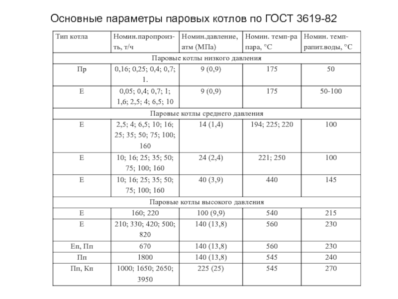 Основные параметры водогрейных котлов по ГОСТ 10617-83