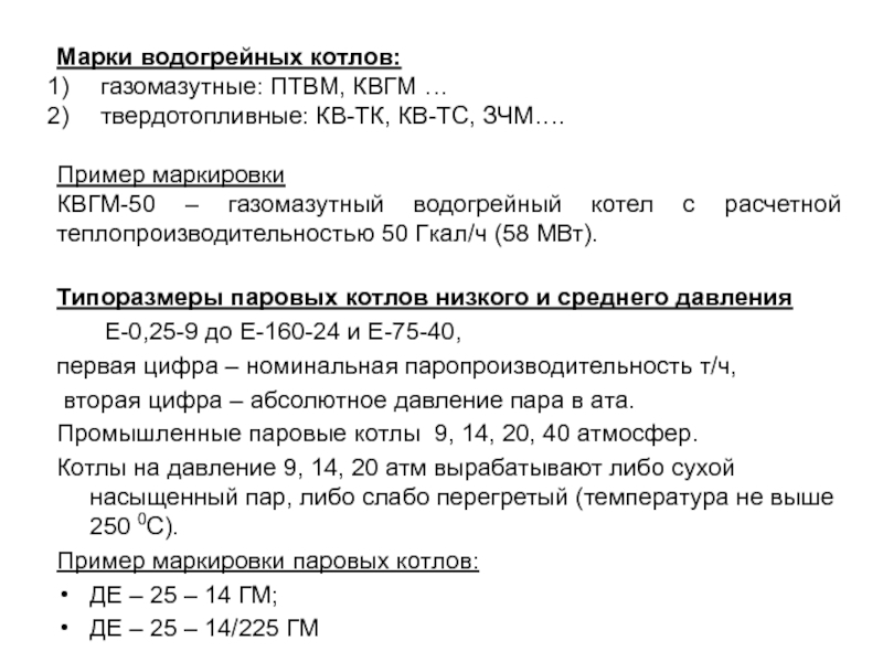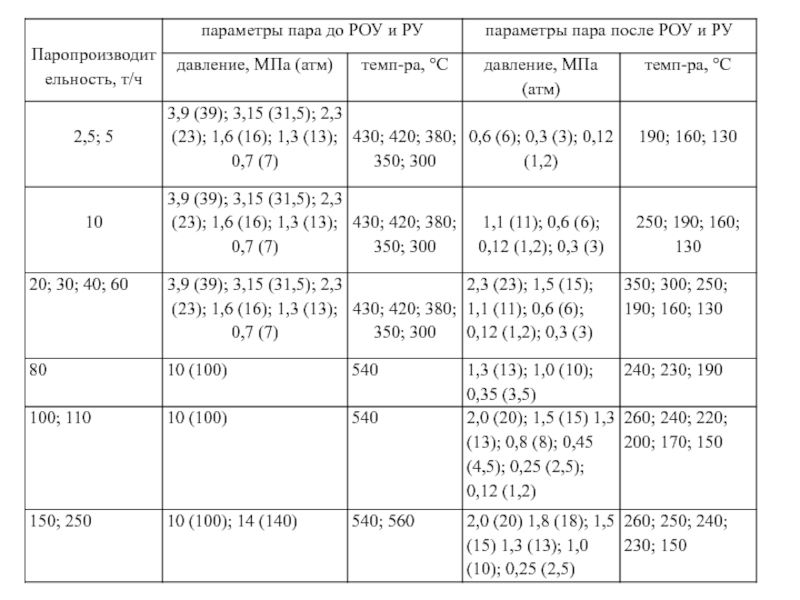 Котлы на давление 9, 14, 20 атм вырабатывают либо сухой насыщенный пар, либо слабо перегретый (температура не выше 250 0С).
