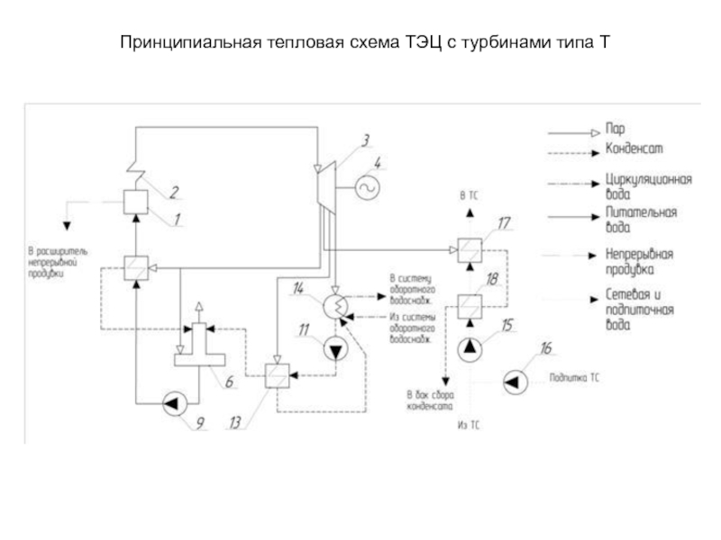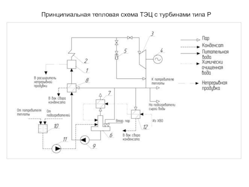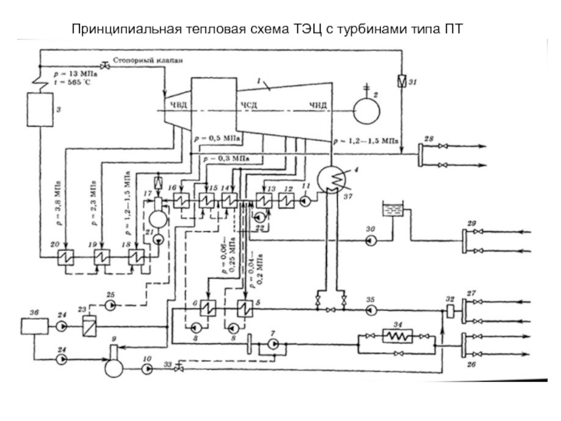 Слайд 22Принципиальная тепловая схема ТЭЦ с турбинами типа ПТ