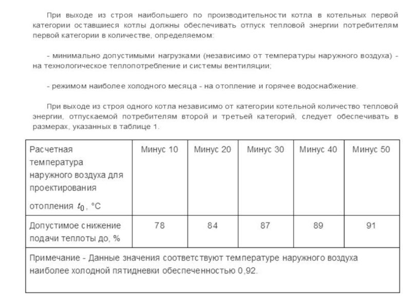Вероятность безотказной работы Р – это способность системы не допускать отказов, приводящих к падению температуры в отапливаемых помещениях жилых и общественных зданий ниже +12°С, в промышленных зданиях ниже +8°С.