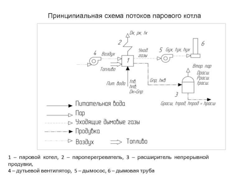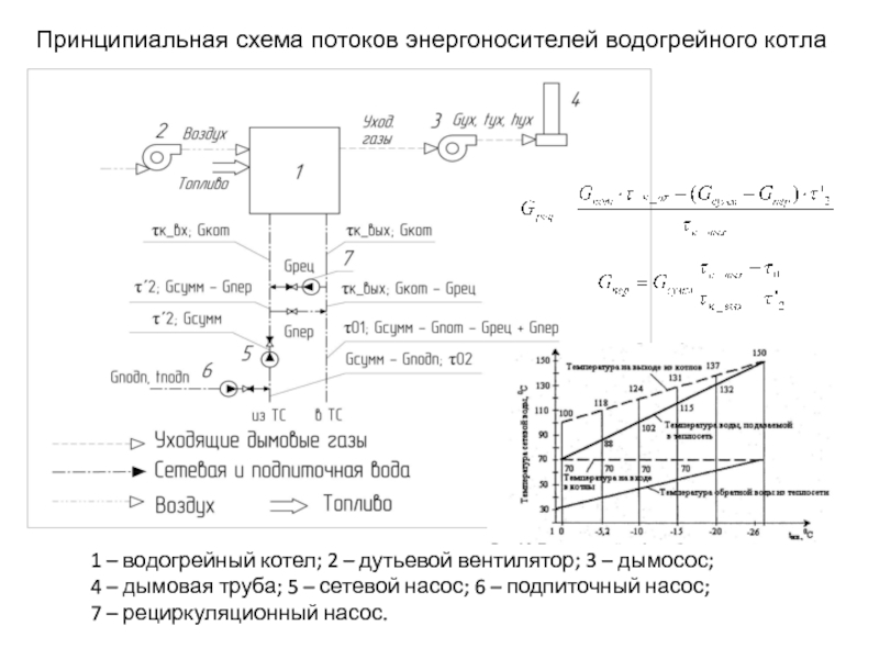 Принципиальная схема потоков энергоносителей водогрейного котла