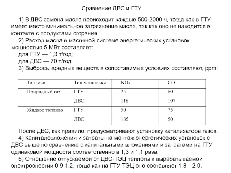 4) Капиталовложения и затраты на монтаж энергетических установок с ДВС выше по сравнению с капитальными вложениями и затратами на ГТУ одинаковой мощности соответственно в 1,3 и 1,1 раза.