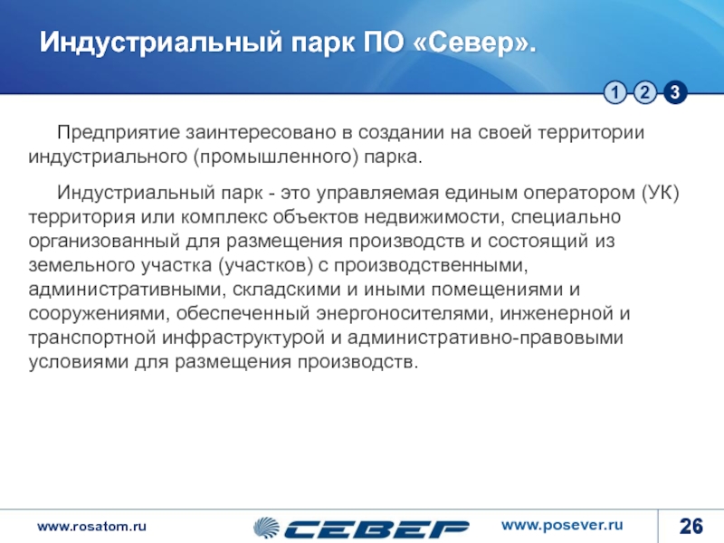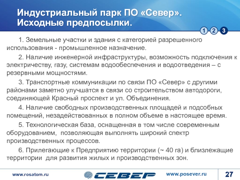 Индустриальный парк ПО «Север». Исходные предпосылки.