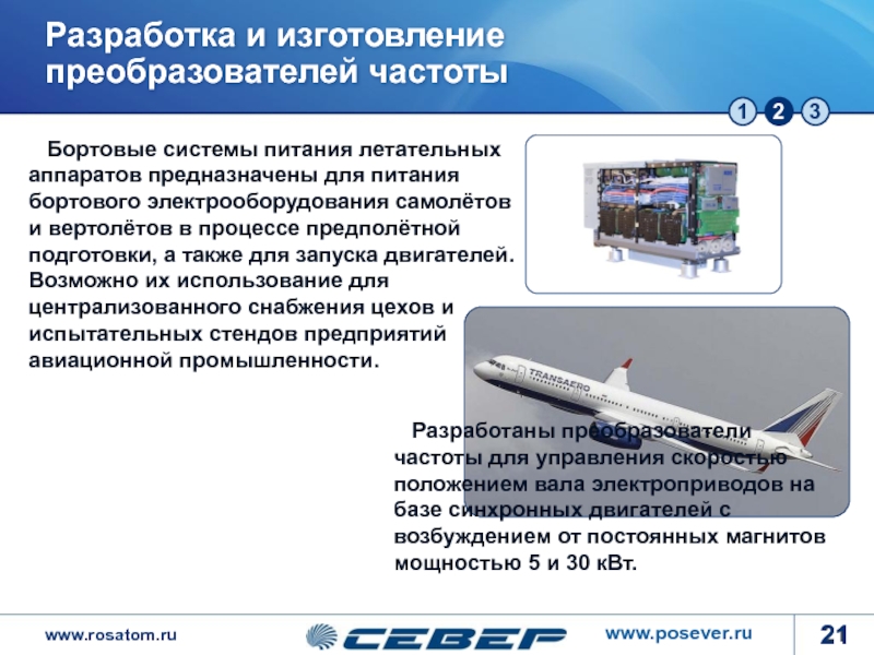 Разработаны преобразователи частоты для управления скоростью положением вала электроприводов на базе синхронных двигателей с возбуждением от постоянных магнитов мощностью 5 и 30 кВт.
