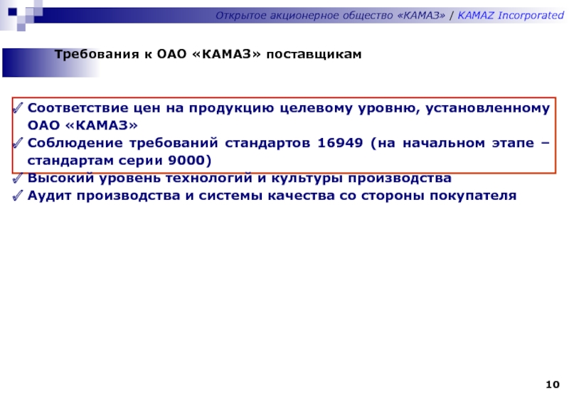 Требования к ОАО «КАМАЗ» поставщикам