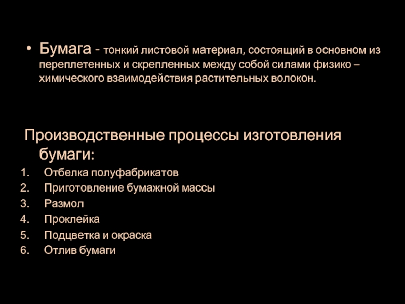 Бумага - тонкий листовой материал, состоящий в основном из переплетенных и