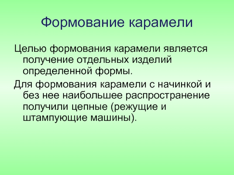 Целью формования карамели является получение отдельных изделий определенной формы.