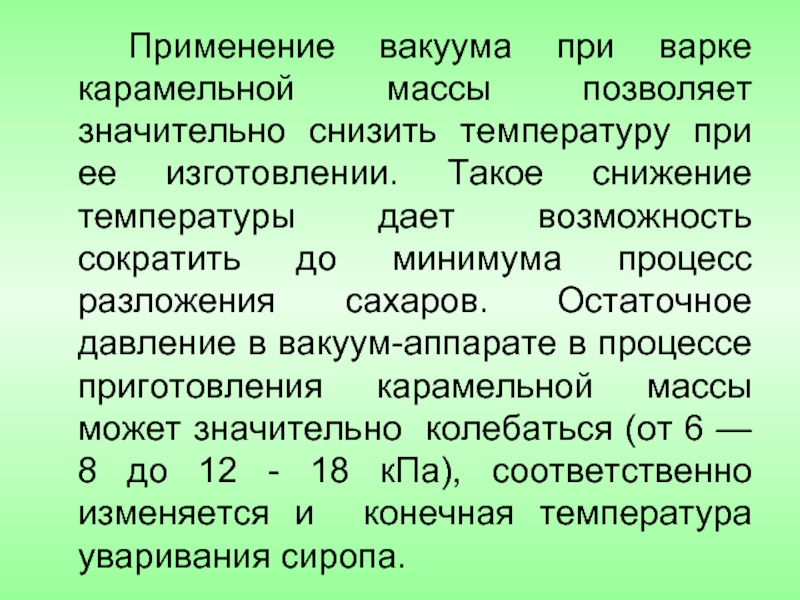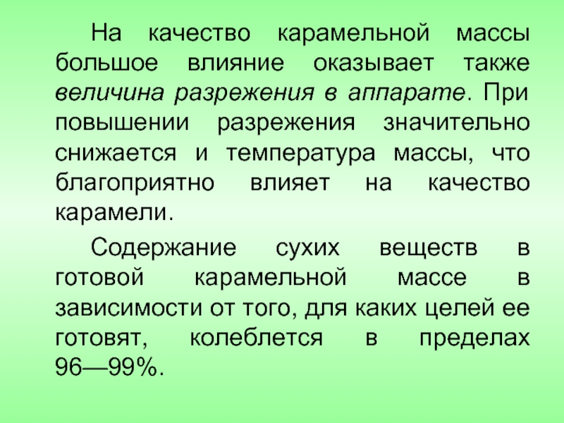 На качество карамельной массы большое влияние оказывает также величина разрежения в