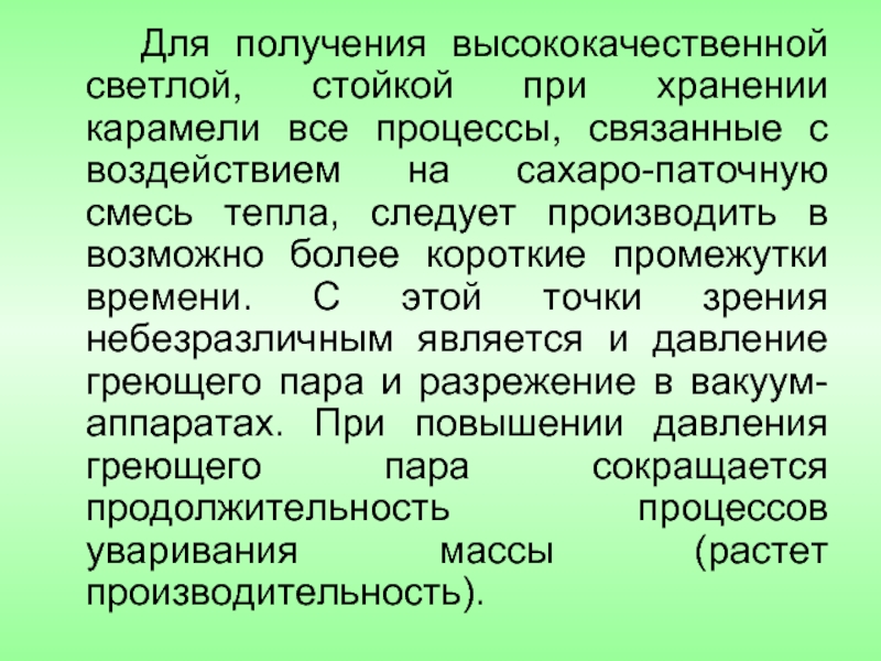Для получения высококачественной светлой, стойкой при хранении карамели все процессы, связанные