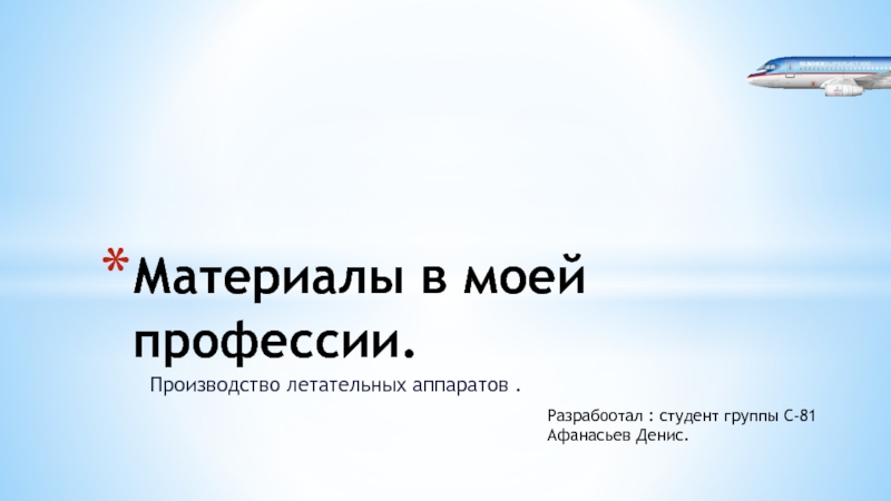 самолета, а также снизить материальные затраты на его производство и эксплуатацию.. Широкое применение в авиастроительной промышленности композиционных материалов (КМ) (например, углепластиков) требует применения титана, т.к. он намного лучше алюминия соединяется с КМ и на 60% увеличивает жизнь летательных аппаратов. Сплавы титана имеют преимущество над другими «крылатыми» сплавами. Композиционные материалы на основе титана обладают высокими технологическими характеристиками.