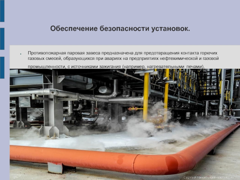 Противопожарная паровая завеса предназначена для предотвращения контакта горючих газовых