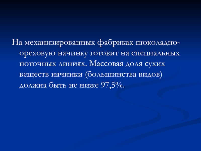 доля сухих веществ начинки (большинства видов) должна быть не ниже 97,5%.