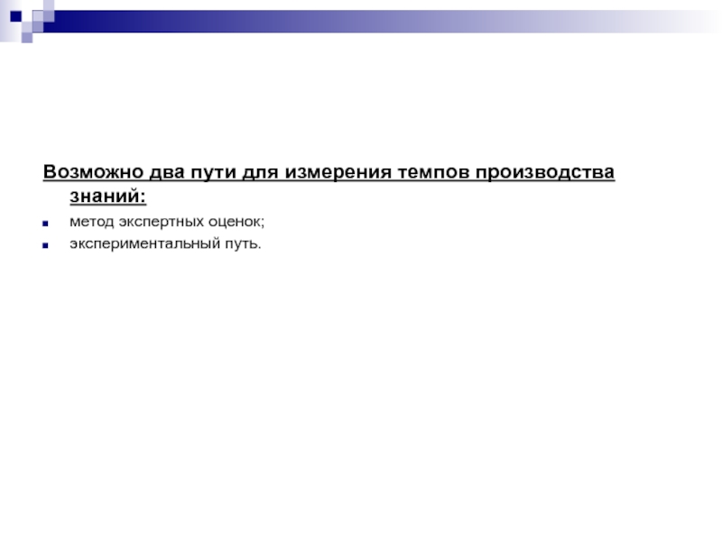 Слайд 5Возможно два пути для измерения темпов производства знаний: