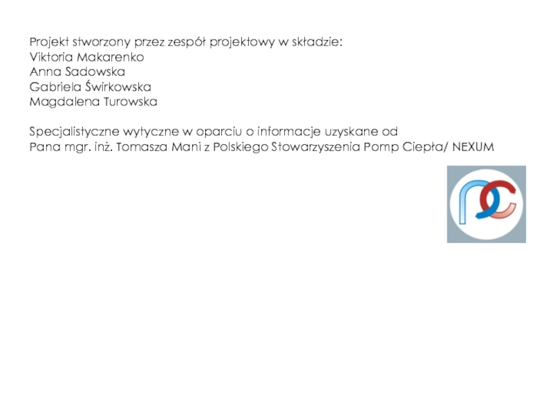 Слайд 9Projekt stworzony przez zespół projektowy w składzie: