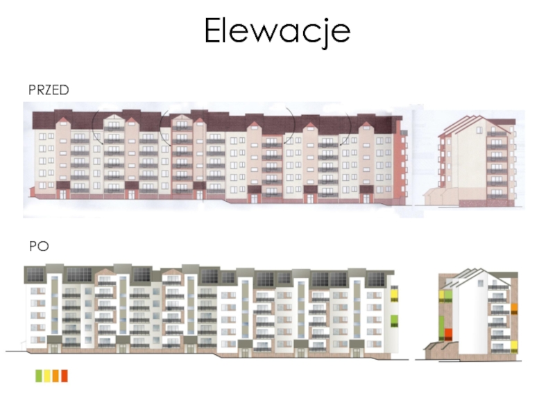 zmiana kolorystyki elewacji, wprowadzenie wyraźnych akcentów kolorystycznych;