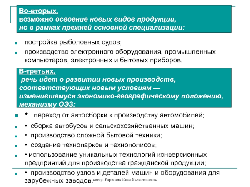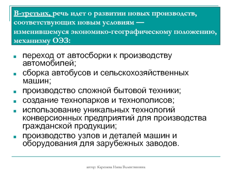 изменившемуся экономико-географическому положению, механизму ОЭЗ: