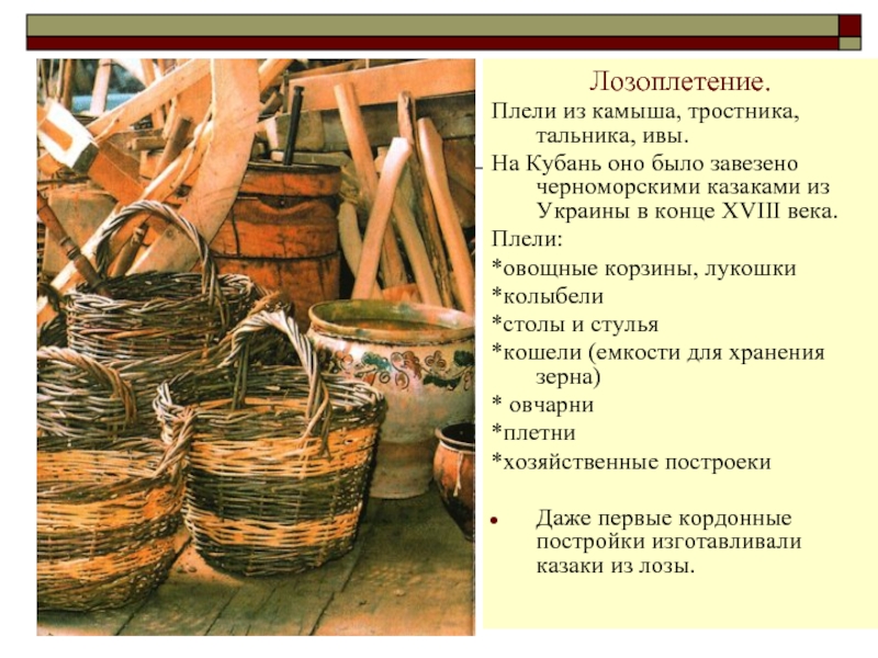 Даже первые кордонные постройки изготавливали казаки из лозы.