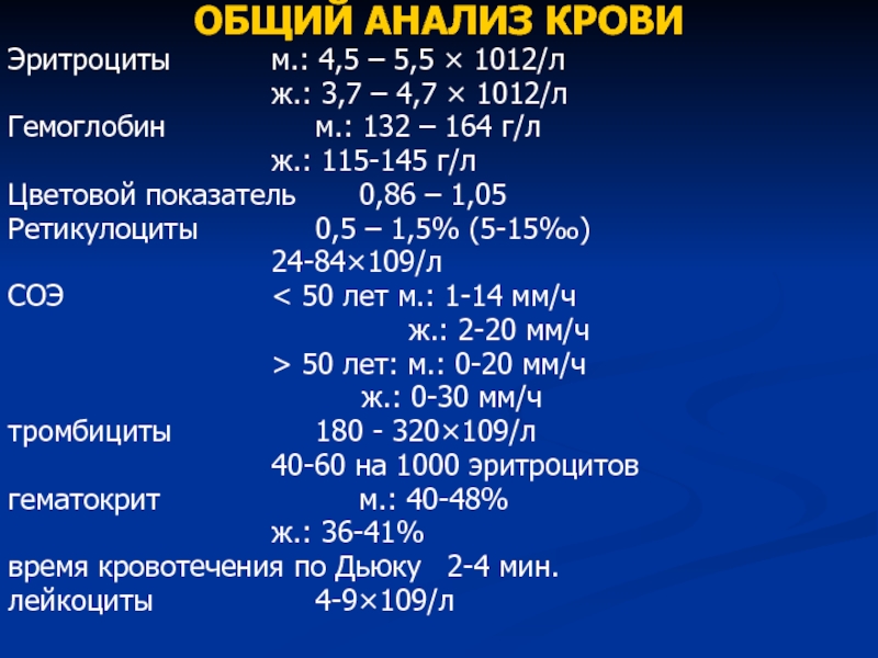 Слайд 25ОБЩИЙ АНАЛИЗ КРОВИ