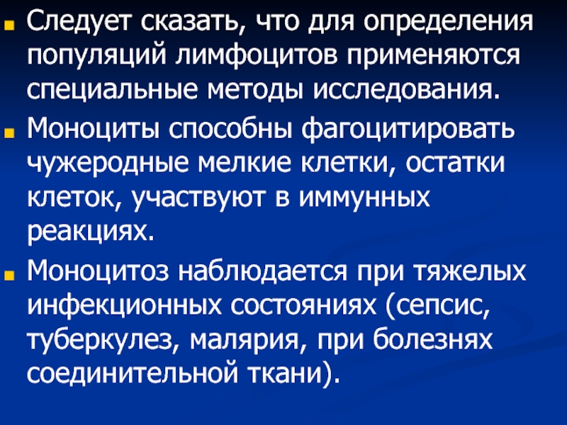 Слайд 35Следует сказать, что для определения популяций лимфоцитов применяются специальные методы исследования.