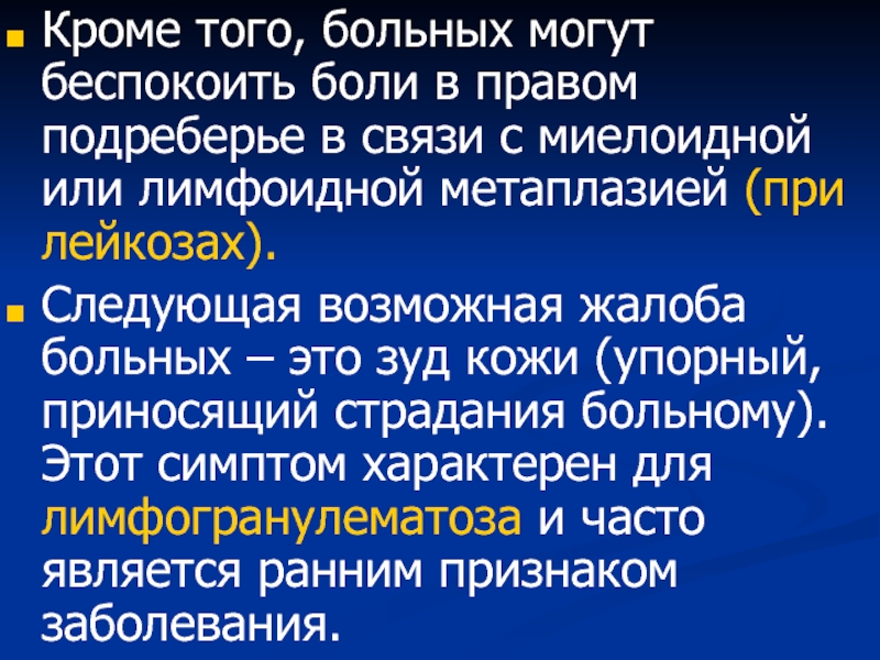 Слайд 6Кроме того, больных могут беспокоить боли в правом подреберье в связи