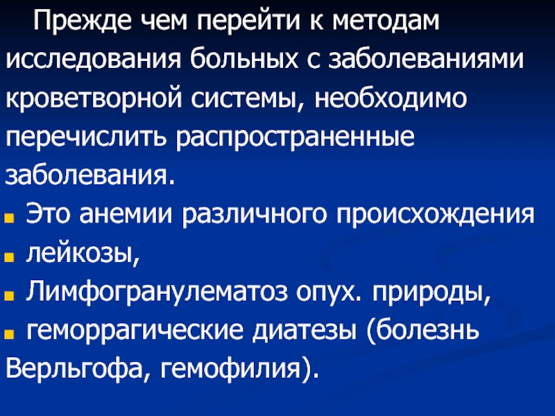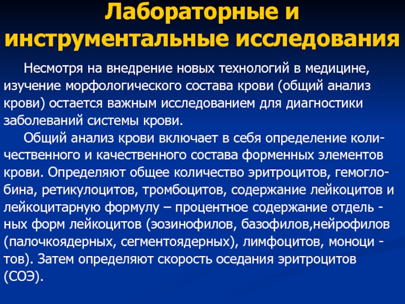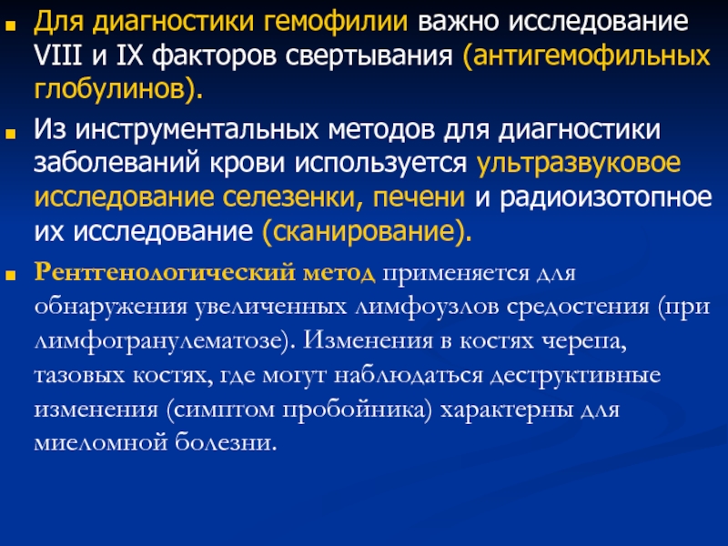 инструментальные исследо-вания при заболеваниях кроветворной системы довольно разнообразны.