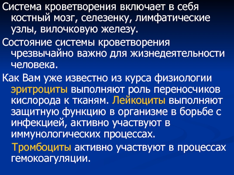 Состояние системы кроветворения чрезвычайно важно для жизнедеятельности человека.