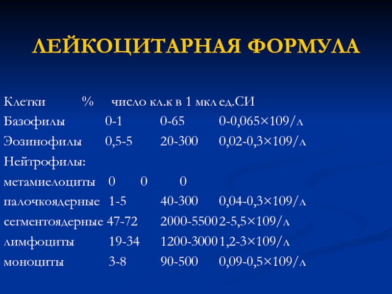 ЛЕЙКОЦИТАРНАЯ ФОРМУЛА