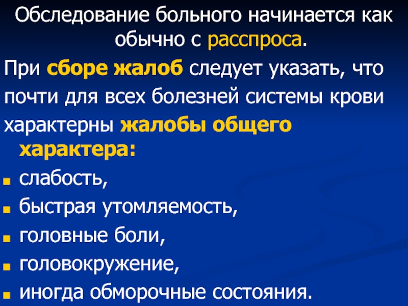 Слайд 1РАССПРОС И ОСМОТР БОЛЬНЫХ С ЗАБОЛЕВАНИЯМИ ОРГАНОВ КРОВЕТВОРЕНИЯ.