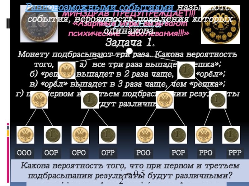 Какова вероятность того, что при первом и третьем подбрасывании результаты будут различными?