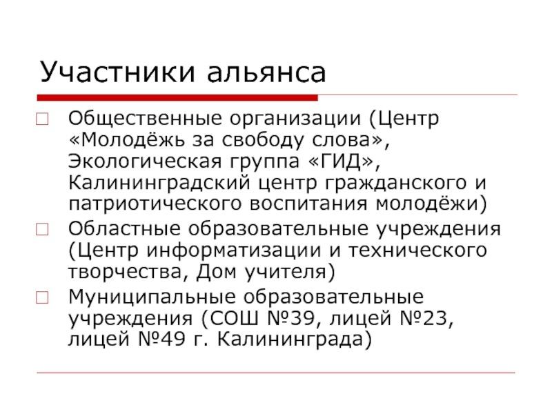 Слайд 11Калининградская региональная молодёжная общественная организация