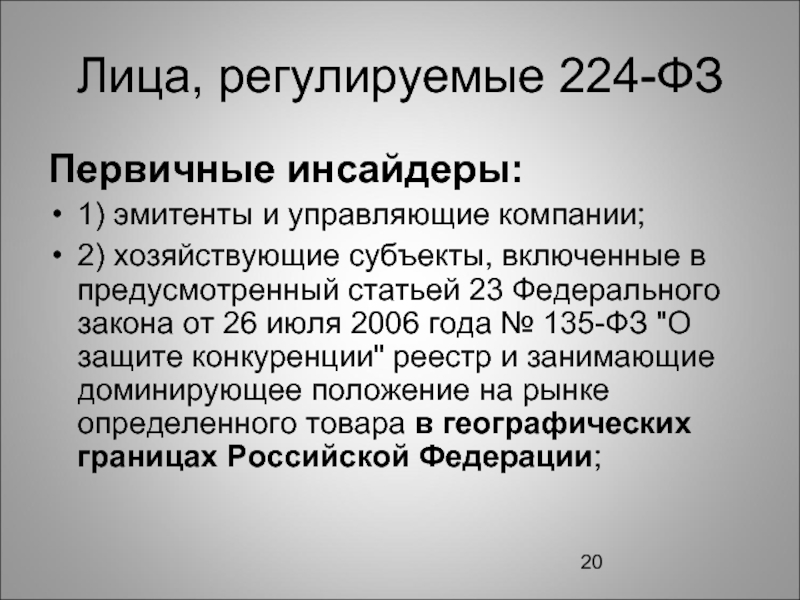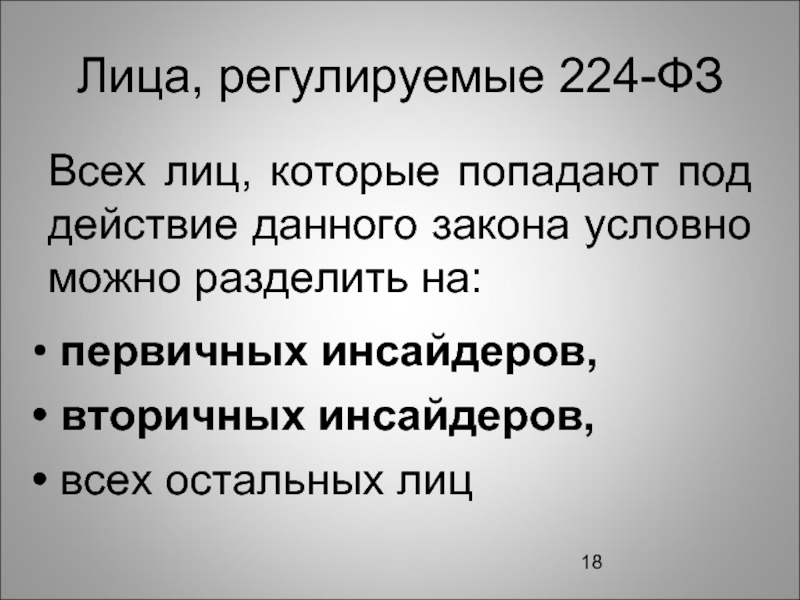 Слайд 82ОСНОВАНИЯ ДЛЯ ВКЛЮЧЕНИЯ ЛИЦ В СПИСОК ИНСАЙДЕРОВ (I)