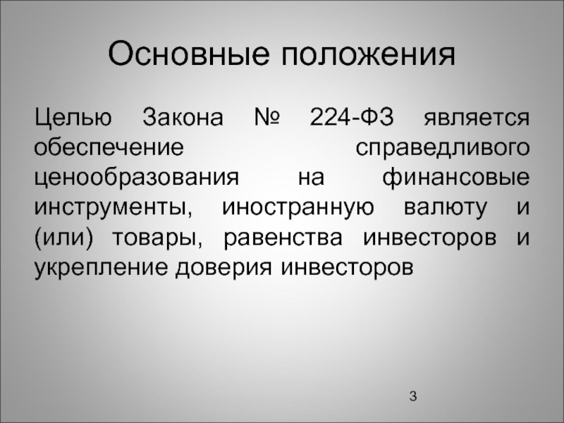 Целью Закона № 224-ФЗ является обеспечение справедливого ценообразования на финансовые
