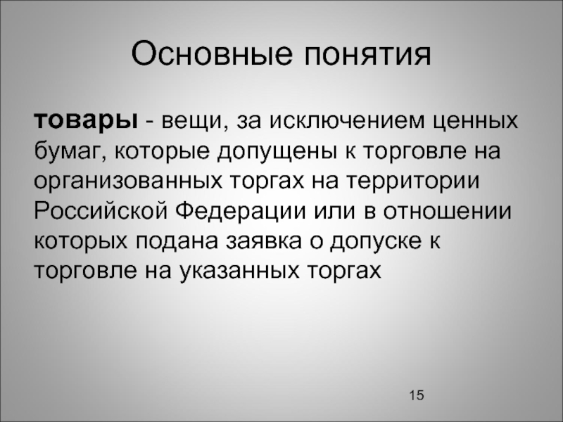 Определяются в соответствии со статьей 2 Федерального закона «О рынке