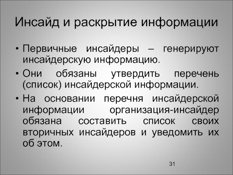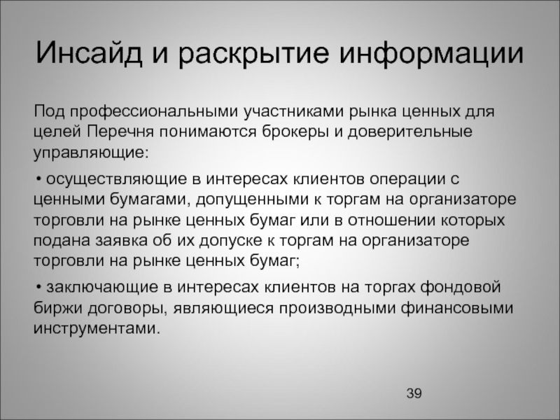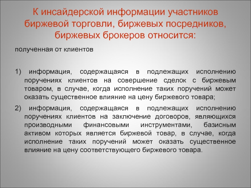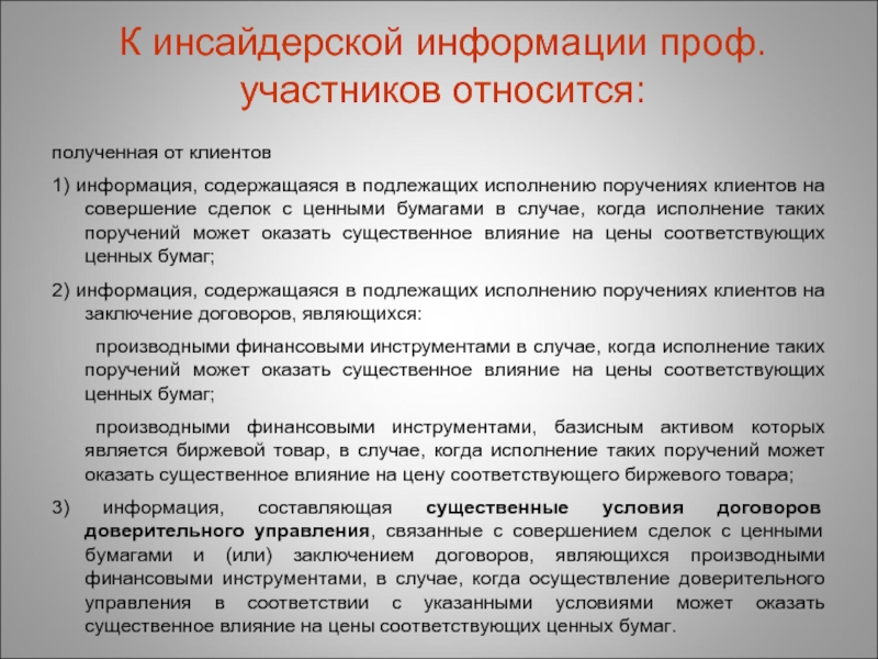 Слайд 1Противодействие неправомерному использованию инсайдерской информации, перечень инсайдерской информации, список инсайдеров