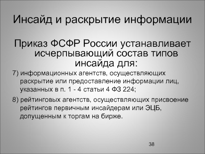 Слайд 86ОСНОВАНИЯ ДЛЯ ИСКЛЮЧЕНИЯ ЛИЦ ИЗ СПИСКА ИНСАЙДЕРОВ (I)