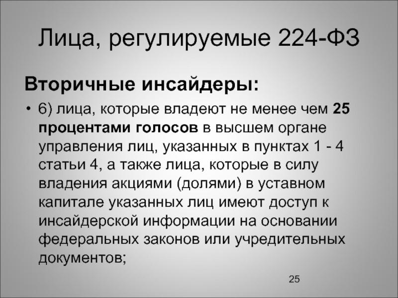 (распоряжаться) не менее чем 25 процентами голосов в высшем органе управления инсайдера;