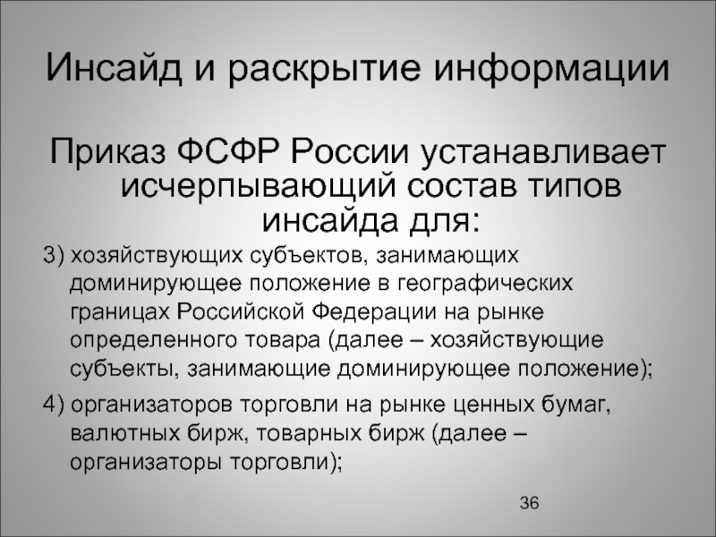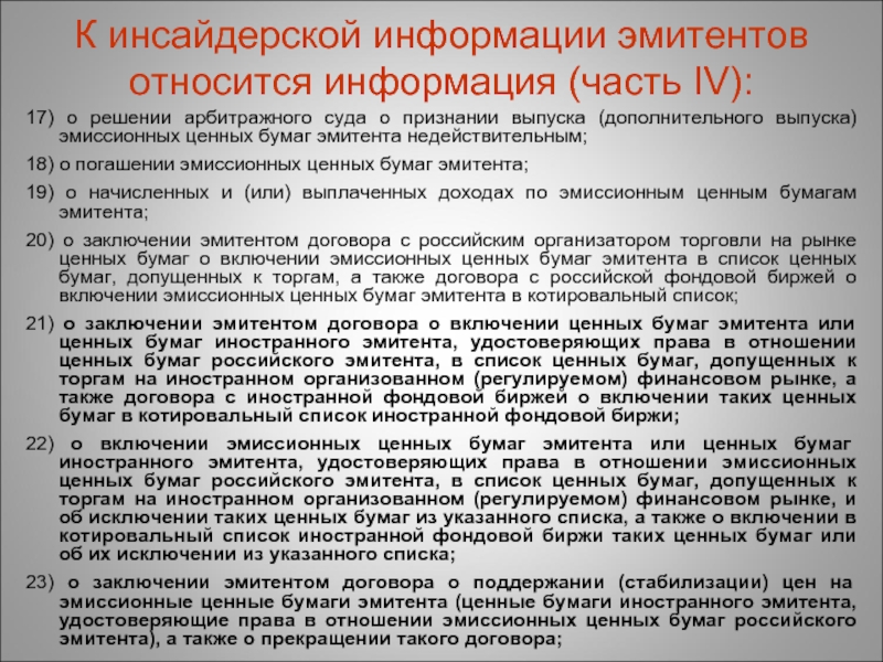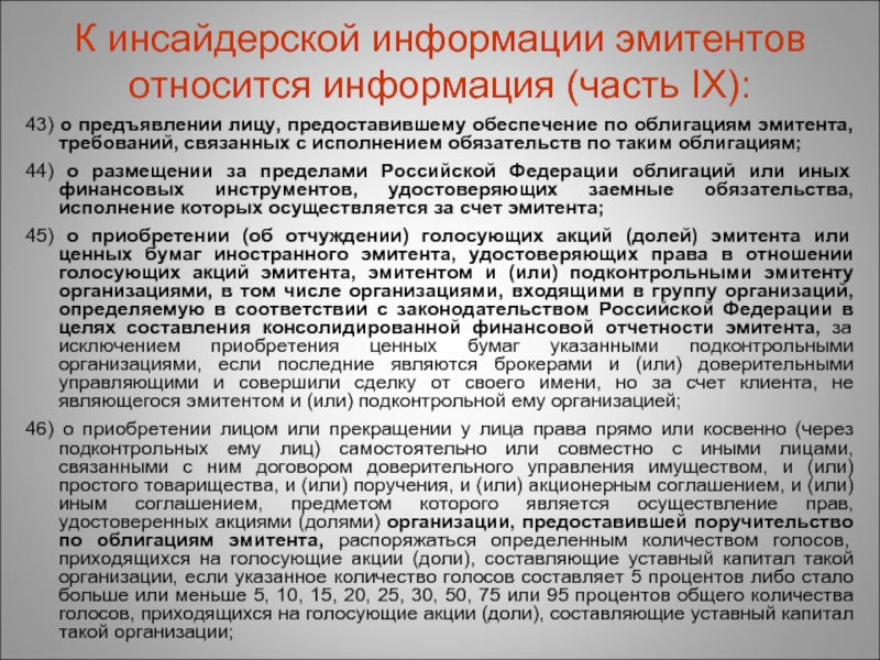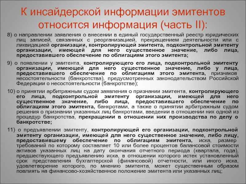 Слайд 87ОСНОВАНИЯ ДЛЯ ИСКЛЮЧЕНИЯ ЛИЦ ИЗ СПИСКА ИНСАЙДЕРОВ (II)