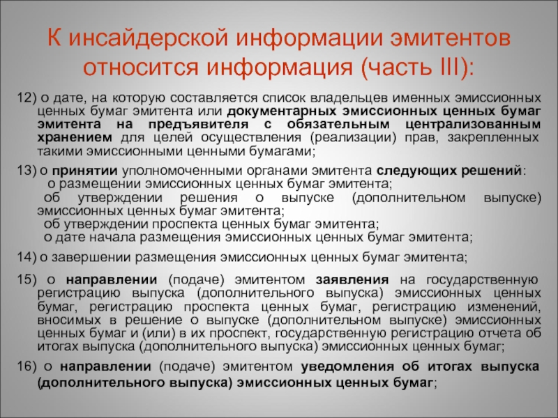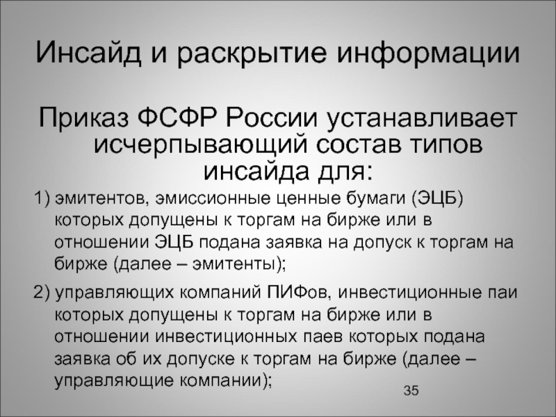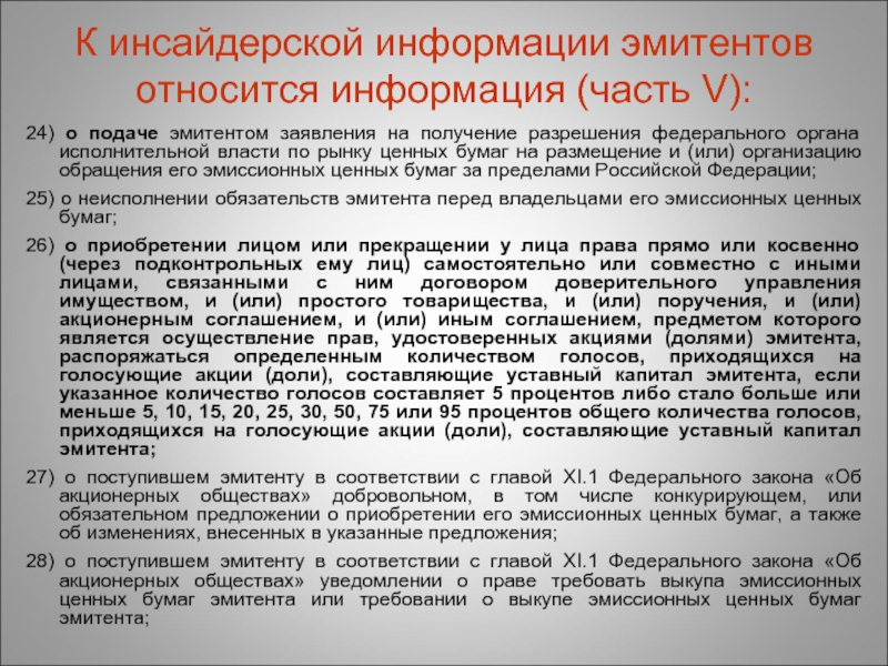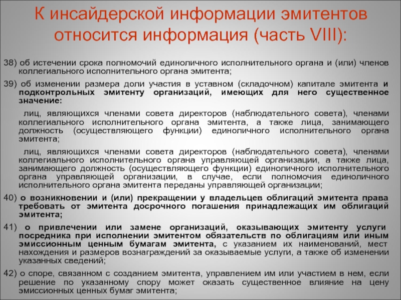 Слайд 8ВЫВОД: действие Закона об инсайде распространяется на эмитентов: