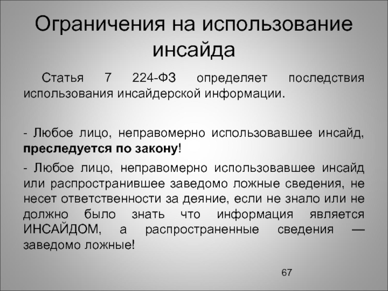 - Уведомление о включении лица в список инсайдеров должно также содержать информационное сообщение о требованиях ФЗ № 224-ФЗ в отношении инсайдеров Организации.