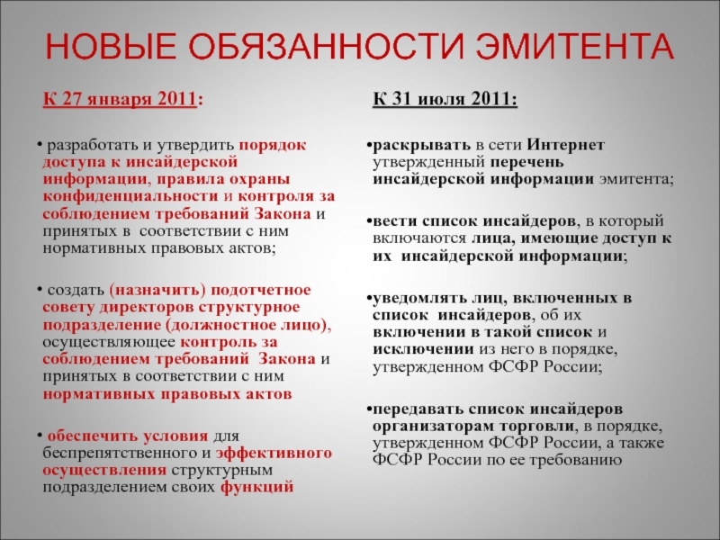 Слайд 17НОВЫЕ ОБЯЗАННОСТИ ЭМИТЕНТА