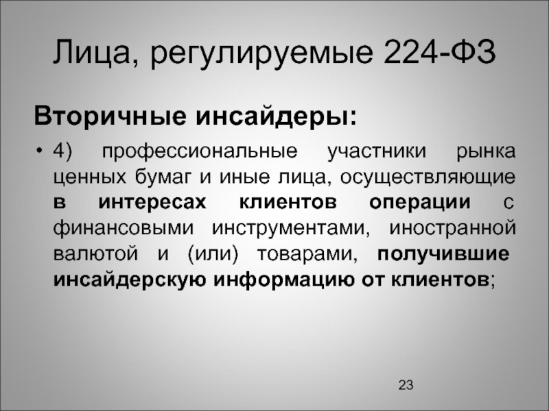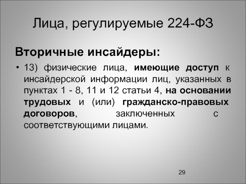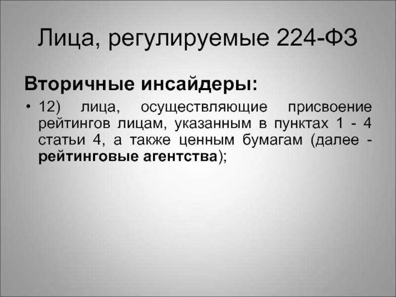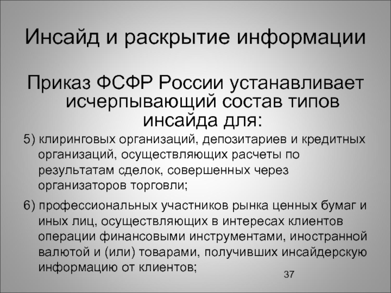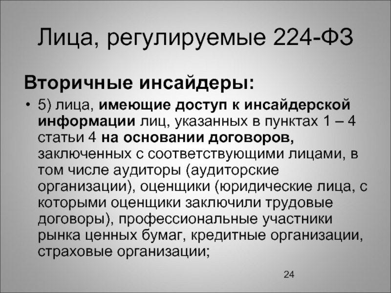 Слайд 83ОСНОВАНИЯ ДЛЯ ВКЛЮЧЕНИЯ ЛИЦ В СПИСОК ИНСАЙДЕРОВ (II)