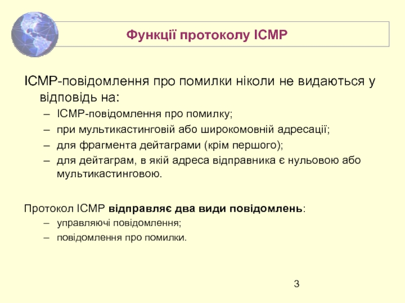 Слайд 3ICMP-повідомлення про помилки ніколи не видаються у відповідь на: