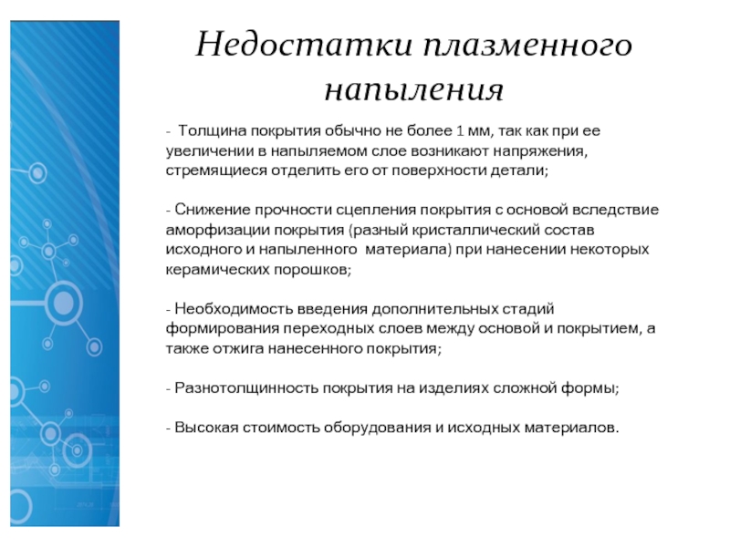 Слайд 12- Толщина покрытия обычно не более 1 мм, так как при