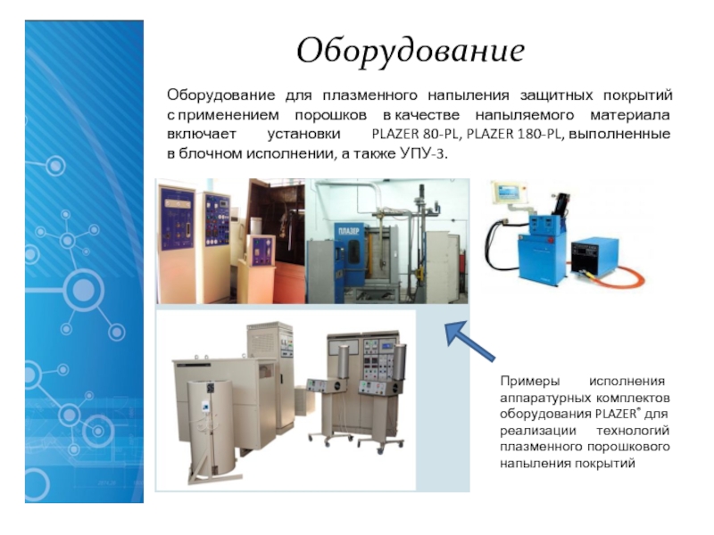 Примеры исполнения аппаратурных комплектов оборудования PLAZER® для реализации технологий плазменного порошкового напыления покрытий