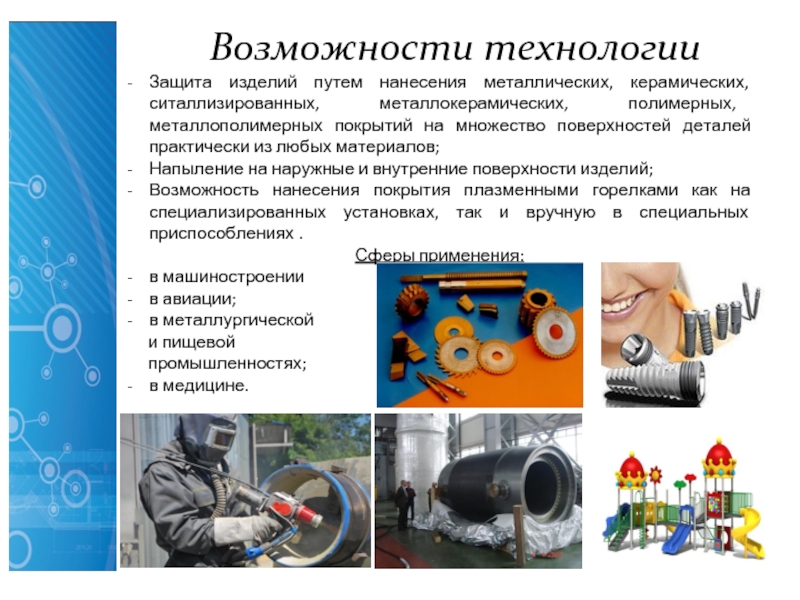 Возможность нанесения покрытия плазменными горелками как на специализированных установках, так и вручную в специальных приспособлениях .