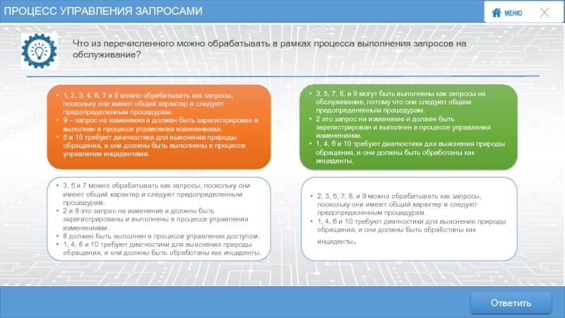 Что из перечисленного можно обрабатывать в рамках процесса выполнения запросов на обслуживание?