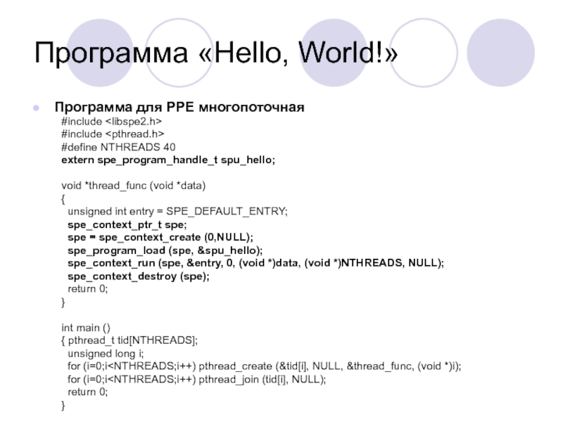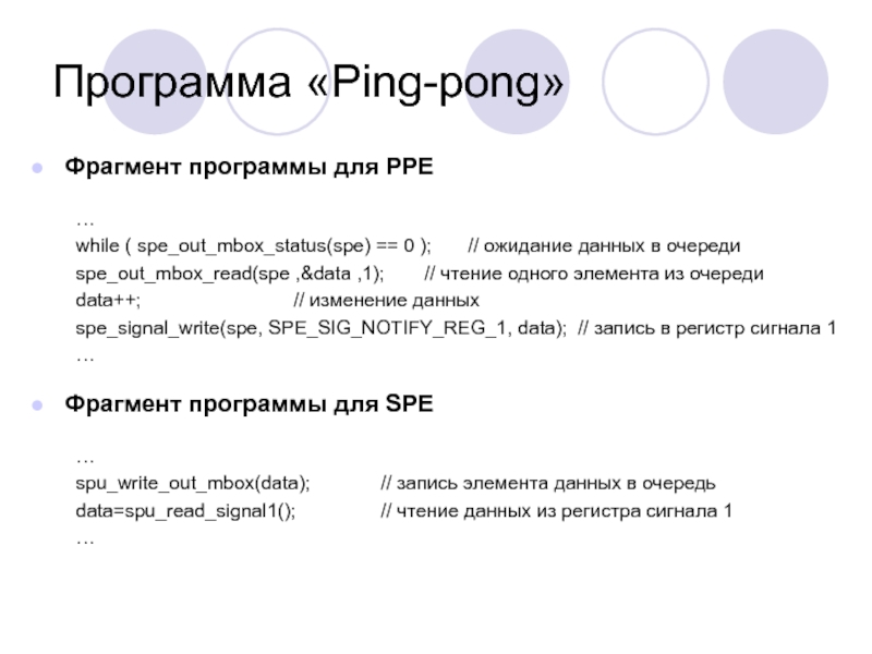 Разработка PPE-управления, распределенного SPE-скалярного кода
