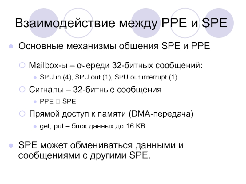 SPE может обмениваться данными и сообщениями с другими SPE.